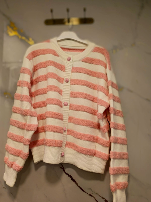 Cardigan Striped Cropped Jacket Free size