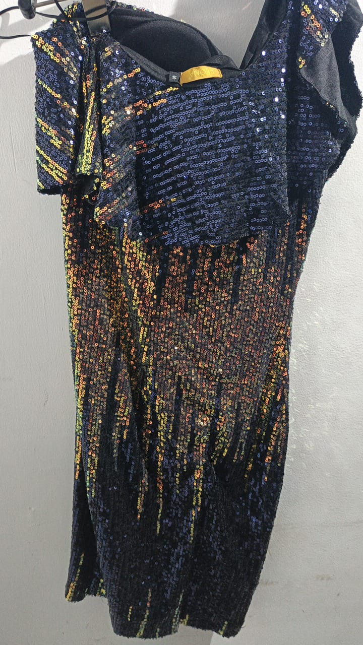 Evening sparkly and short Dress blue with multicolor glitter