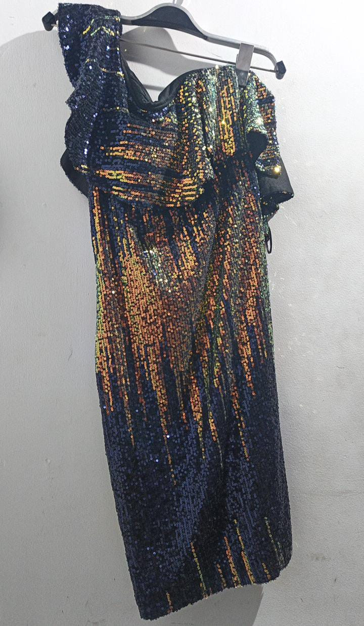 Evening sparkly and short Dress blue with multicolor glitter